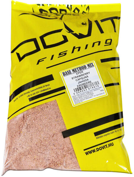 Dovit Base Method Mix - Eper Íz: Szénhidrátbomba pontyoknak és amuroknak! ? A Dovit Base Method Mix eper ízben egy intenzív, szénhidrát alapú etetőanyag, amely ideális a felmelegedő vizekben történő horgászathoz. Kifejezetten pontyok és amurok számára fejlesztették, de más békés halak is szívesen fogyasztják. A keverék azonnal oldódik, látványos ködfelhőt képezve, ezzel magához vonzza a halakat a horgászhelyre. Mikor válaszd? Ha gyors hatású, szénhidrátdús keveréket keresel. Felmelegedő és meleg vízben, amikor a halak a kukorica alapú etetőanyagokat részesítik előnyben. Ponty és amur horgászatához elsősorban. Hogyan használd? Bekeverés: Óvatosan, apránként adagold a vizet a mixhez (1 kg mixhez kb. 1,5-2 dl víz). Folyamatosan keverd, amíg el nem éred a megfelelő állagot. Rostálás: A tökéletes bontás érdekében rostáld át a bekevert anyagot. Felhasználás: Használd önmagában vagy pelletes horgászat során a pelletek tetejére szórva. Tipp: A Base Method Mixet pelletes horgászat során "sapkaként" is alkalmazhatod, így a felhő hamar felhívja a figyelmet a pelletekre. Miért válaszd a Dovit Base Method Mixet? Intenzív aroma: Gyorsan a vízbe vonzza a halakat. Szénhidrátbázis: Nyári időszakban különösen hatékony. Minőségi garancia: Élelmiszeripari szabványok szerint gyártva, ellenőrzött alapanyagokból. Finom szemcseméret: Könnyen keverhető és jól oldódik. Kiszerelés: 900g