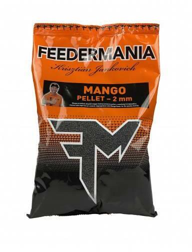 Feedermania Mango pellet. Mango aromával átitatott magas halolaj tartalmú pellet, amely eredményesen használható adalékként, vagy etetőanyagként is, áztatás után feederkosárba töltve. Kiszerelés: 800 gr.