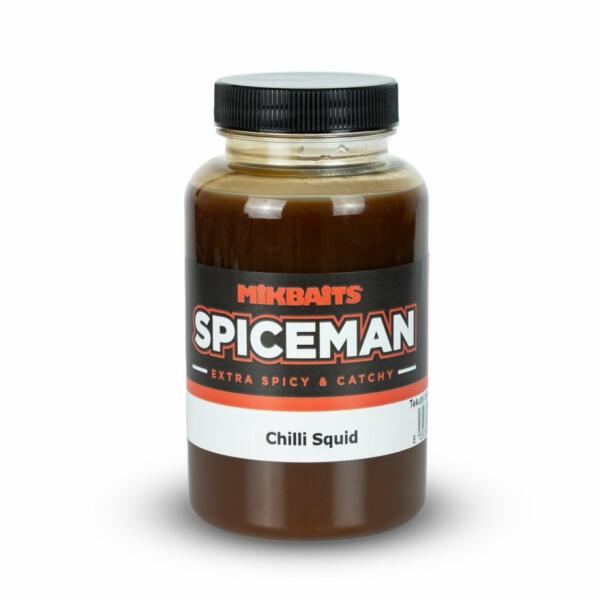 Spiceman Chilli Squid BOOSTER 250 ML . MIKBATS BOOSTEREK különleges összetevőiknek köszönhetően rendkívül intenzív illat és íz anyaggal rendelkeznek. A különleges összetételnek köszönhetően messziről az etetéshez csábítja és tartja a közelben a nagy halakat. PVA barát termék. Elsősorban csalikhoz, azaz bojlikhoz, pelletekhez, Method, Zig vagy PVA keverékekhez használjuk . r A csalétkeket előre  tudjuk vele locsolni kivéve az olvadó pelleteket. A boosterek nem oldják fel a PVA anyagokatA Spiceman Chilli Squid  bojli  tintahalliszttel kiegészített fűszeres Spiceman keverék,  mely  ellenállhatatlan vonzerejét és az eredeti British Squid Octopus esszencia ereje adja éstartalmazza, a legjobb tintahalesszenciát, amely valaha is látott napvilágot  látott!  Ez a kombináció egy olyan bojlit eredményezett, amely nagyon csábító  és megnyerő, ugyanakkor a legnagyobb halakat is magához vonzza.  Sok személyes rekord született már rajta a szűk kollégák körében végzett tesztelés során, köztük két 32 és 33 kg-os hal is a cseh szövetségi vizekről. Kipróbáltuk más golyókkal együtt is és  sokszor ez a bojli hozta a legnagyobb halakat.  Egy másik nagy előny, amit a tesztelés során fedeztünk fel, hogy gyakorlatilag egész évben működik. Tavasszal, íváskor, nyáron, ősszel és év végén  a  nagyon hideg vízben is . Minden bizonnyal az erős chili  és paprika kivonatnak köszönhető és ezen kívül egy ízstimulátort adtunk hozzá, amit még nem használtunk más bojliban.